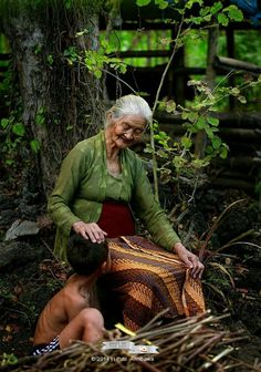 Dulu, jam 8 pagi, seperempat dagangannya selalu masih tertata di amben atau lincak atau apalah namanya meja dari bambu dengan tengahnya berlubang dan mbok selalu duduk disana saat beraksi.