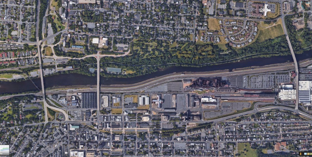 Bethlehem is also a bit annoying. The highest job densities (albeit ones drowning in parking) now lie south of the river in the casino on the redeveloped steel mill site, which lies along a (very active) freight line.
