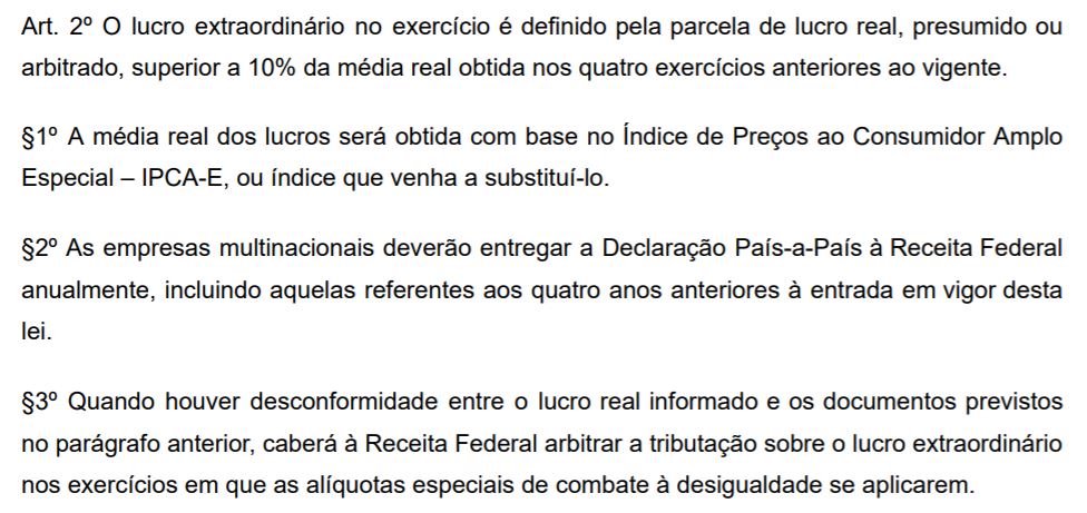 3. Lucro extraordinário é definido pela parcela de lucro superior a 10% da média real obtida nos quatro exercícios anteriores ao vigente.