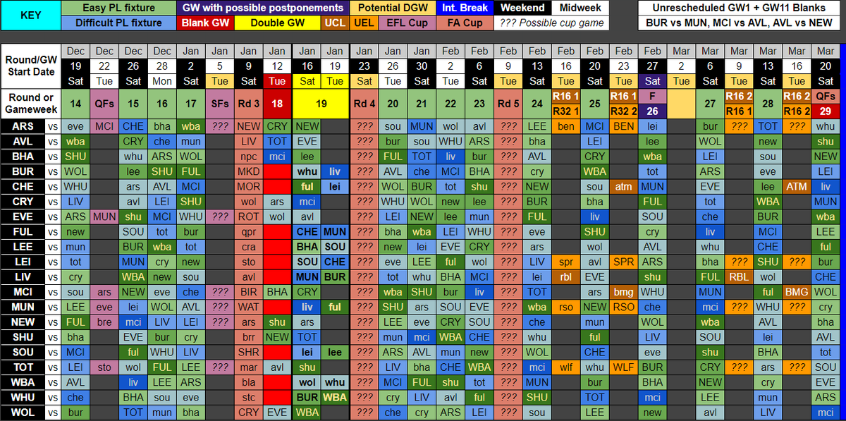 There's space for the GW 1+11 Blanks to move to GW18/19, and they could also move to GW17 if neither side reaches the EFL Cup QFs.