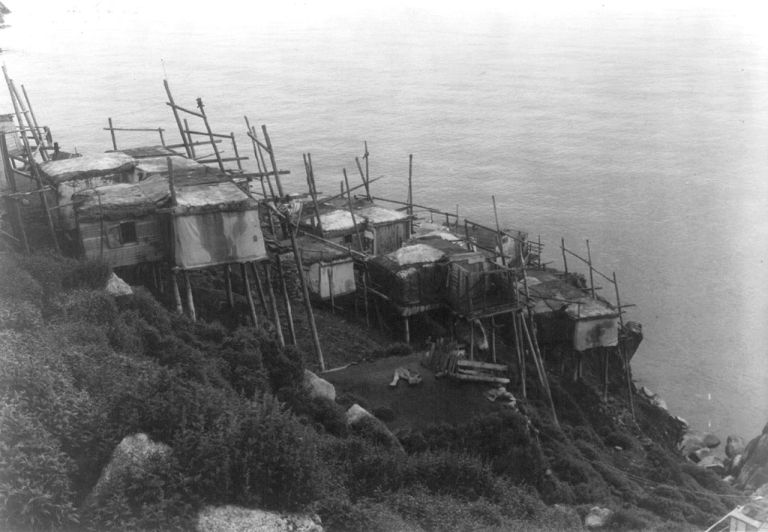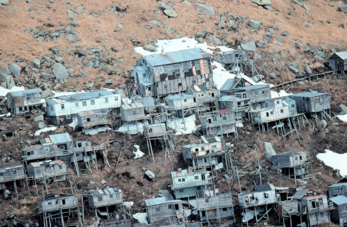 Here's the abandoned village of Ukivok on King Island in the Bering Sea, west of Alaska (photos 1892 and 1978)