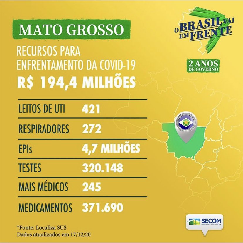 Recursos, equipamentos e profissionais do @govbr @jairbolsonaro para estados e municípios / CENTRO-OESTE (PARTE 1):