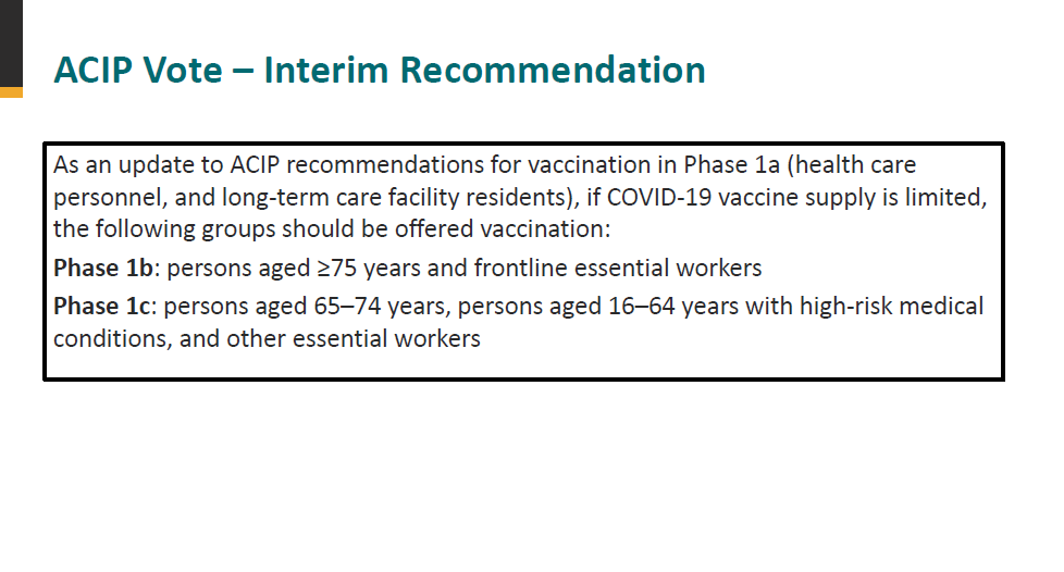 Here is what ACIP is trying to balance. This is 100% due to the fact that vaccines have to be rationed because supply is limited. We are seeing the necessary rationing of life saving interventions in action, b/c we don't have enough vaccine. We should thank ACIP for this work.