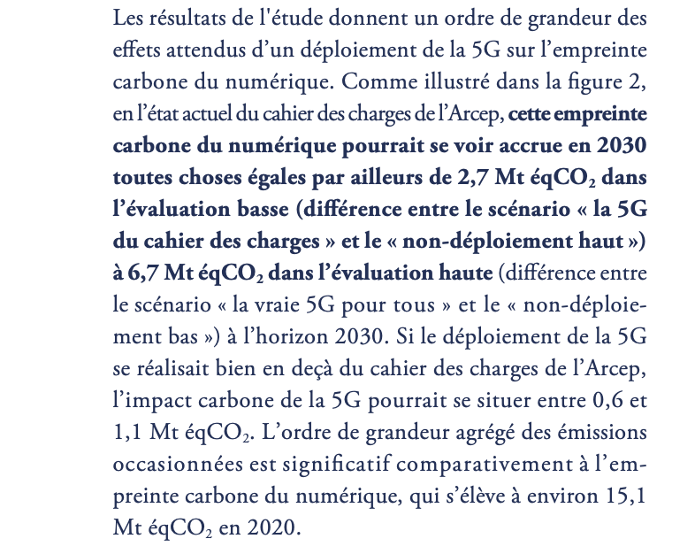 Et par ailleurs, dans l'une et l'autre des études pas un mot sur les externalités. C'est sans doute le point qui est le plus contestable : la 5G, comme l'internet, est un facteur déterminant d'économie. Sans internet, notre mode de vie serait encore plus intenable.
