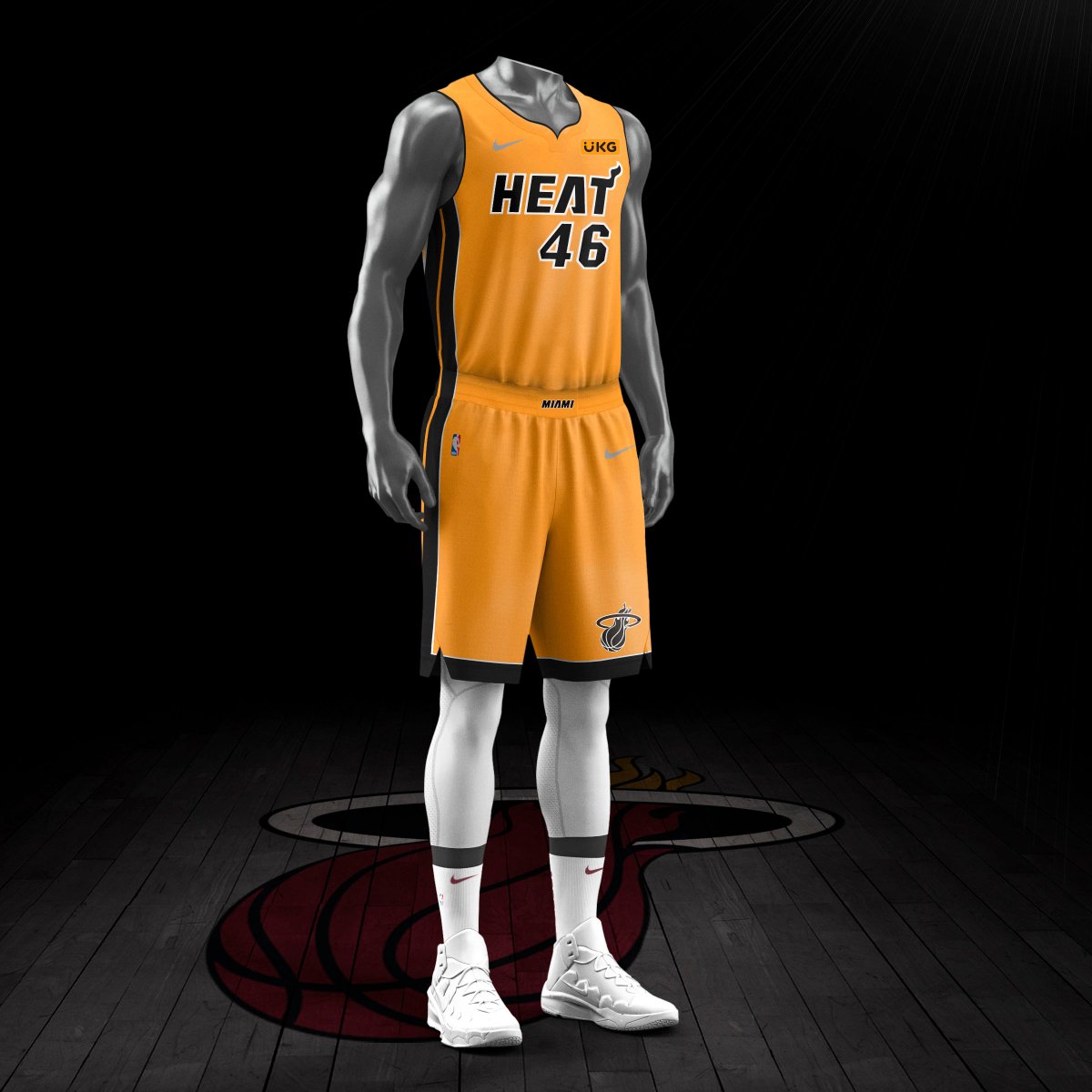 O layout tem o uniforme branco (que é excelente) como base. O laranja é uma cor alternativa pouco utilizada pelo Heat.