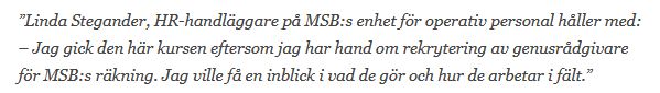 MSB har t o m personal som särskilt ska handlägga rekrytering av "genusrådgivare". De får gå kurser för det, gissar att kurserna hålls av just... genusrådgivare...