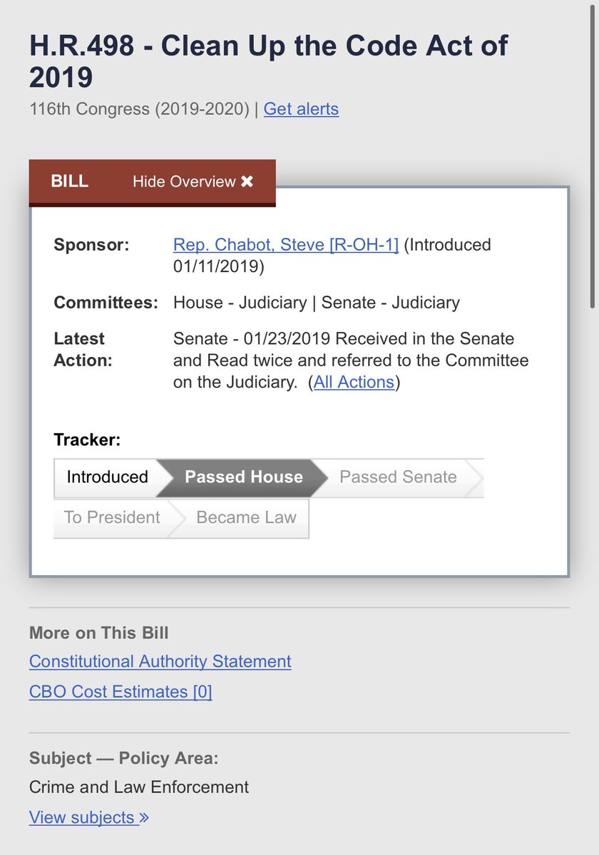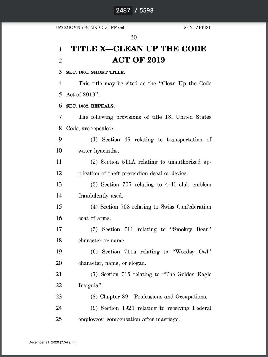 The repeal of USC Title 18 Section 711 providing criminal penalties for misusing Smokey Bear was integrated into the Omnibus bill from Republican @RepSteveChabot’s H.R.498 from early 2019.