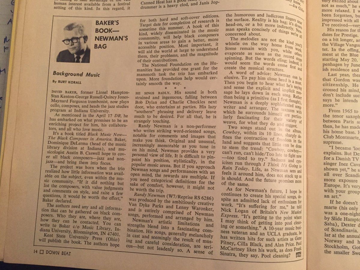 1 A Twitter discussion yesterday led me to pull 5/29/69 issue of Downbeat off my shelf. A random issue, 51 yrs ago, & you cannot believe the picture it paints of the scene. Cover interviews w/Sonny Rollins (Ira Gitler), Dexter Gordon (Gitler) & Louis Jordan (Leonard Feather)