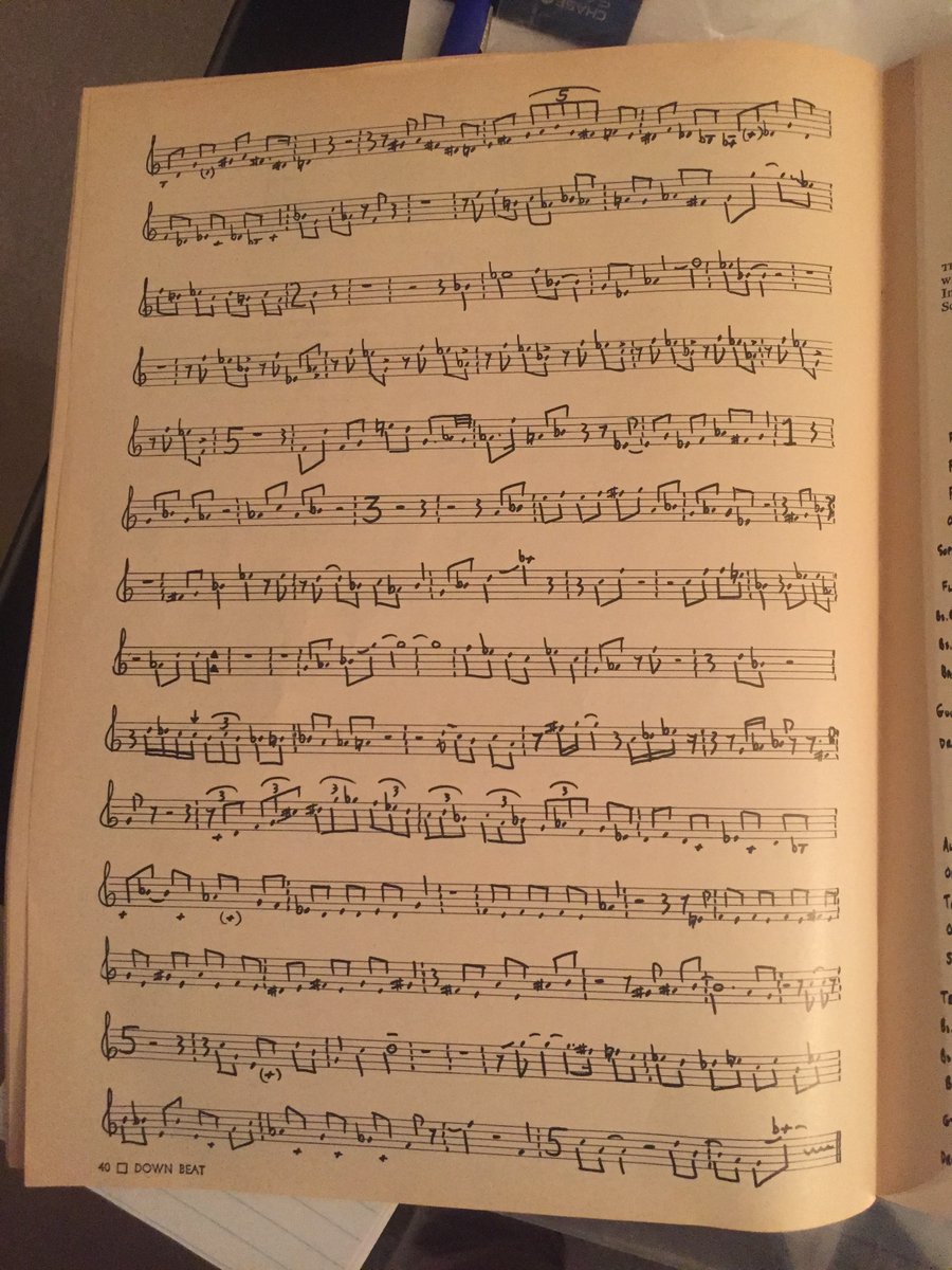 9 Transcription of Ornette Coleman’s tune “Round Trip” with Ornette’s complete solo ("New York Is Now"). The magazine says the transcription is by “a young teacher-composer at the University of Illinois” – Jim McNeely. Anybody know what happened to him? cc: @jimmymacx