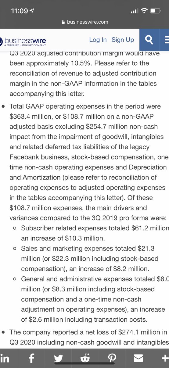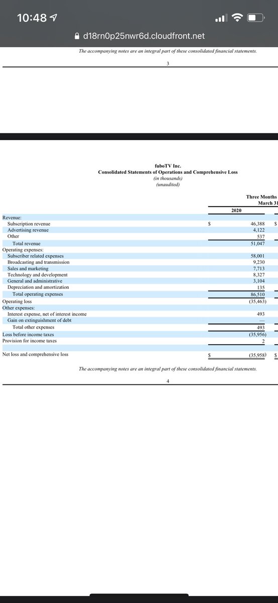 1) as far as I can see $fubo loses money on every subscriber & thats before any additional costs such as SG&A, r&d, broadcasting transmission are even added in. This company has a negative gross margin. Best comparison is their subscriber revs r like $roku hardware revs but worse