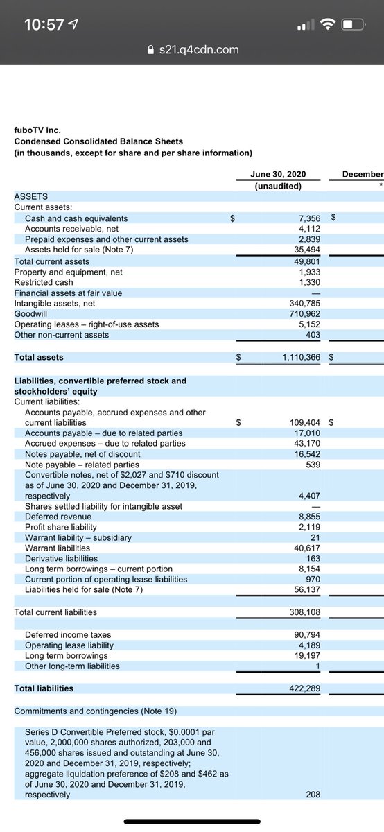 4) $fubo balance sheet is a mess. Prior to facebank acquiring them in april the company had $18.5M in total assets with 8M cash & 195M in liabilities with a shareholder DEFICIT of 425M... in fact with their losses from operations if they didnt raise funds theyd have gone under