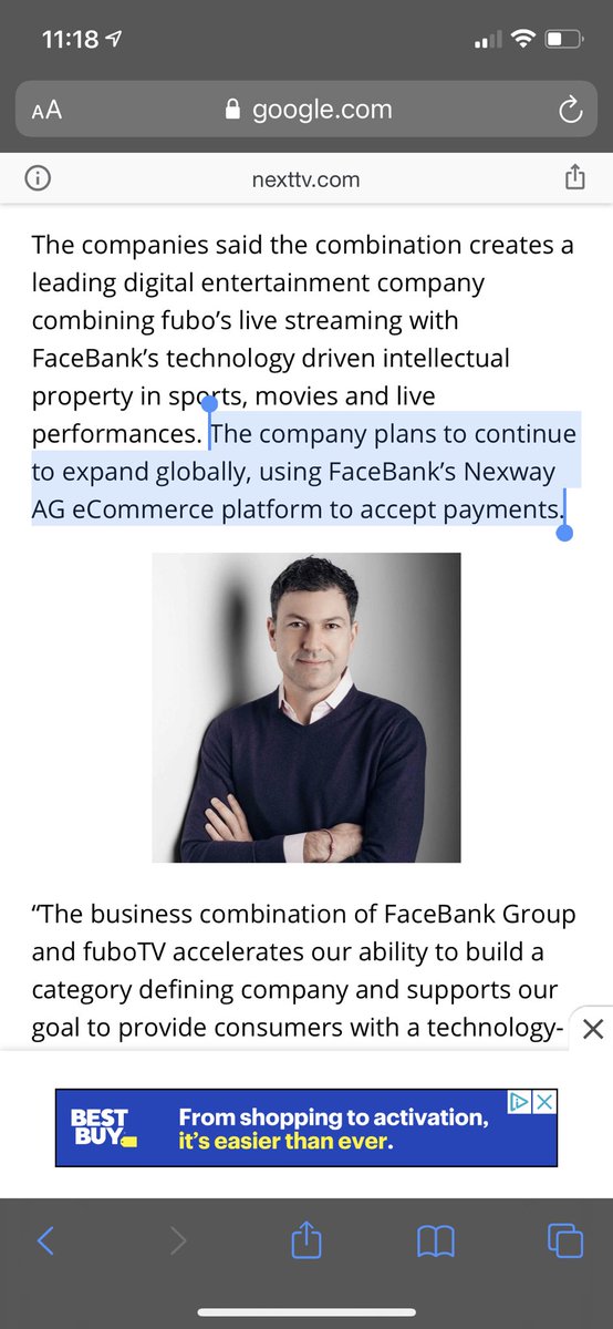 8) upon facebanks acquisition of $fubo a big reason that was pumped about the value was Facebanks ownership of an entity named nexway AG which had an e-commerce subscription platform that was highly touted and 3 months later $fubo just sold it for a loss...