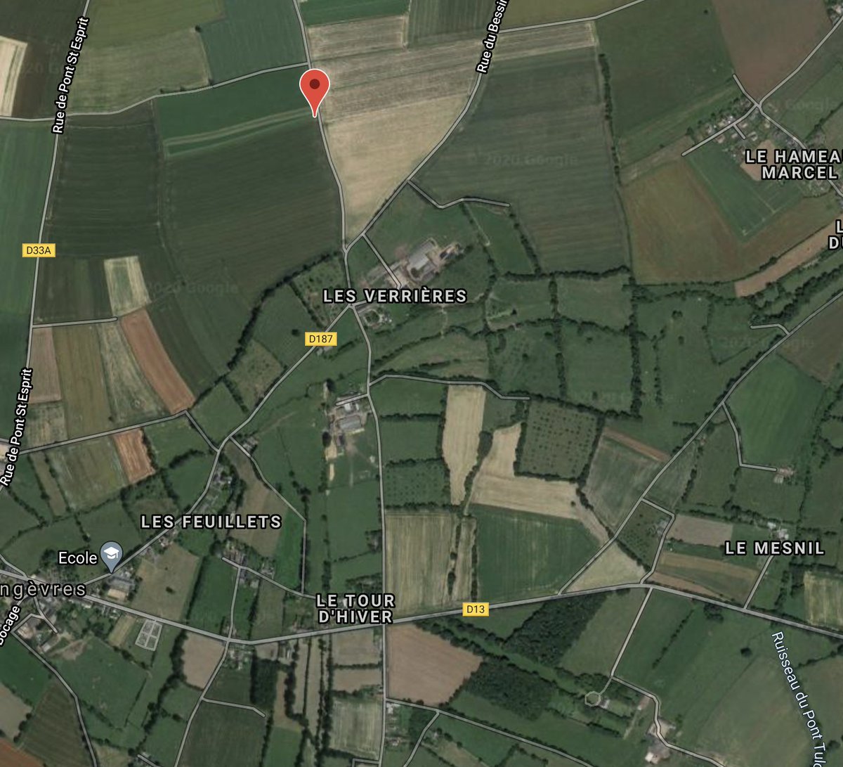 Lt-Col Woods and the other men were moved from this location just north of Les Verrieres to Bayeux British Cemetery on 04/07/1945 where they were reburied.