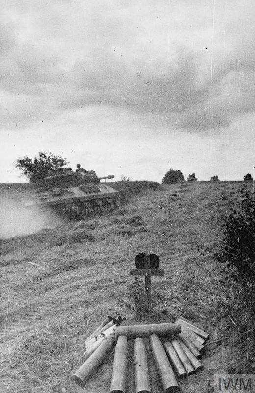 An isolated site can be seen here on June 7th. Trooper Barton, 1st East Riding Yeomanry had been killed in action on D-Day. The crew returned to the tank the next day, sadly they had to cut him into two with a knife to remove him. Harrowing but the reality of what the men faced.