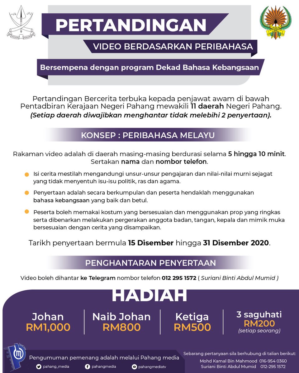 โพ๏ธ Rakaman video adalah di daerah masing-masing berdurasi selama 5 hingga 10 minit. Sertakan nama dan nombor telefon.