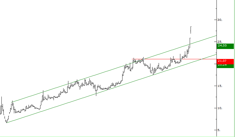 1- bir yükselen trendiniz var (alttaki) paralelini alıp onu üstteki dirence koyuyorsunuz ve elinizde artık bir yükselen kanal olmuş oluyor..