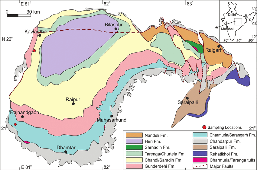 Trace the Chhattisgarh Basin from the above map to the one here, which has 6 layers of marine sediments over the Bastar Craton, like the Grand Canyon.