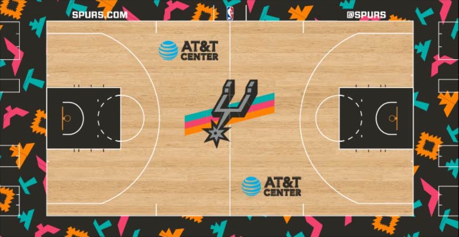 Os Spurs jogavam num ginásio chamado Alamodome - olha o "Alamo" aí outra vez. Sua quadra também foi pintada com as Fiesta Colors.