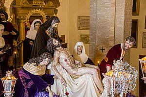 Servitas: en las esquinas del paso de La Piedad, las tallas de los profetas Isaías, Daniel, Jeremías y Ezequiel junto con cuatro ángeles mancebos.