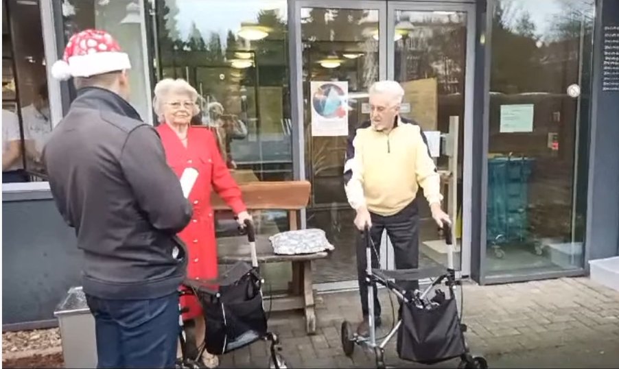 Der Querdenken-Weihnachtsmann ist unterwegs, um Seniorenheime für Eigenwerbung zu missbrauchen. Im "Haus an der Jüch" in Bergisch-Gladbach hat es einen heftigen Covid-Ausbruch unter den Bewohnern gegeben. Für ihn sind das aber alles nur "positiv getestete". 🤢