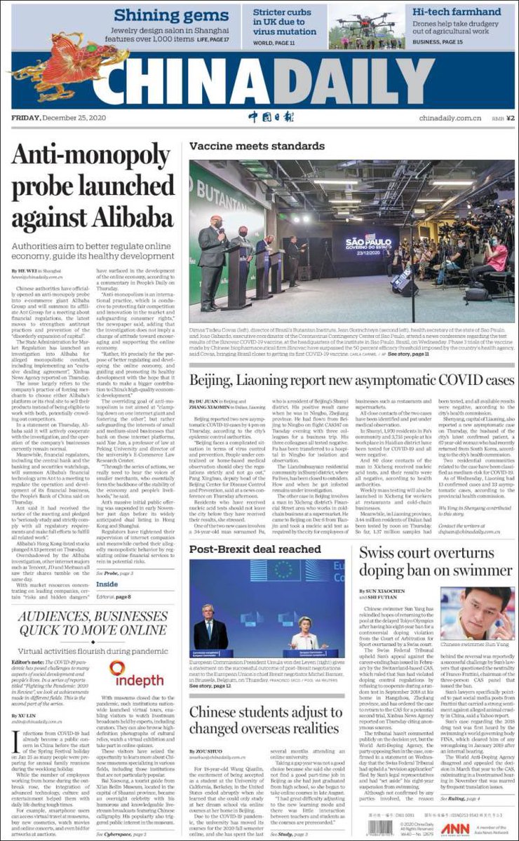 China aplicó hasta hoy 1 millón de dosis de la vacuna contra Covid19