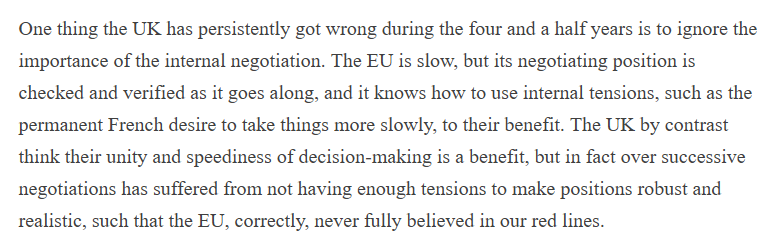 Absolutely this (from a former negotiator). My evolving conclusion is that a UK failure to reach a realistic internal position sufficiently early on LPF and fish in particular has meant ending up with a worse deal than expected in these areas.