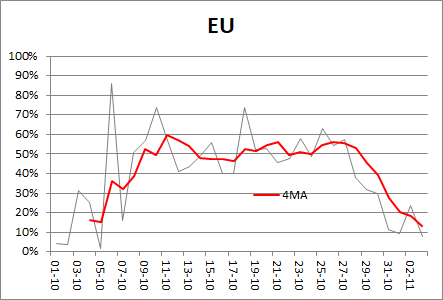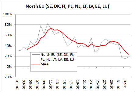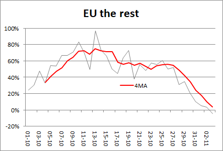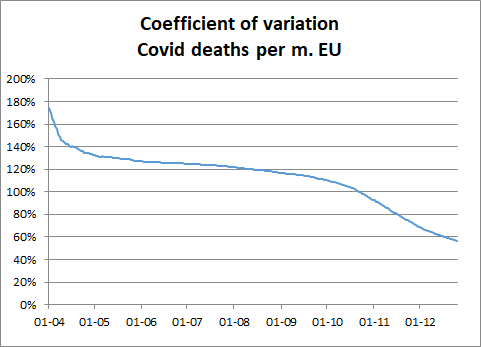 Here we recognize our old friend, reversion to the mean. Tegnell was right: maraton and not sprint, most of the countries will converge: