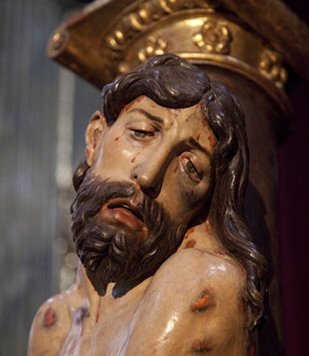 El Cristo de la Agonía fue tallado por Juan de Mesa en 1622, recibiendo culto en la Parroquia de San Pedro de Bergara (Guipúzcoa).