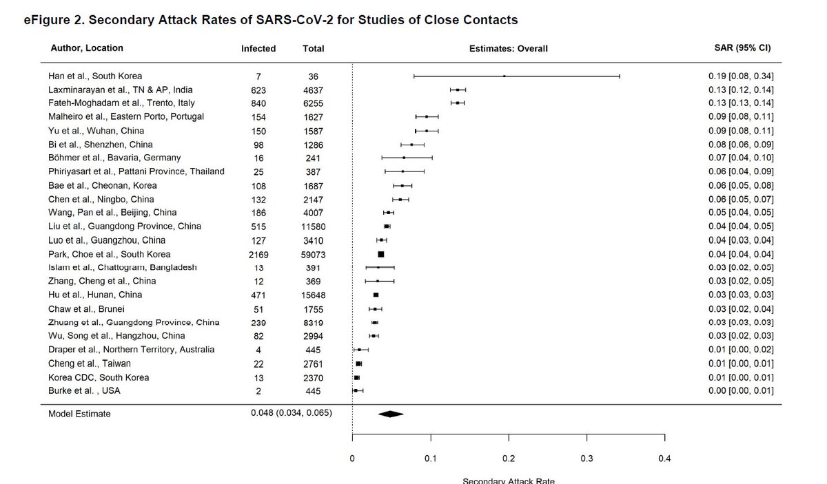 1/n Une méta-analyse sur le taux d'attaque secondaire ( nombre de personnes infectées/nombre de personnes présentes) dans les foyers. jamanetwork.com/journals/jaman…