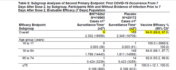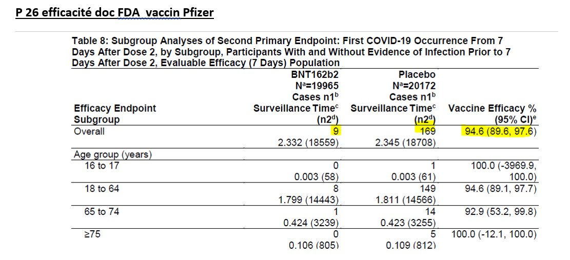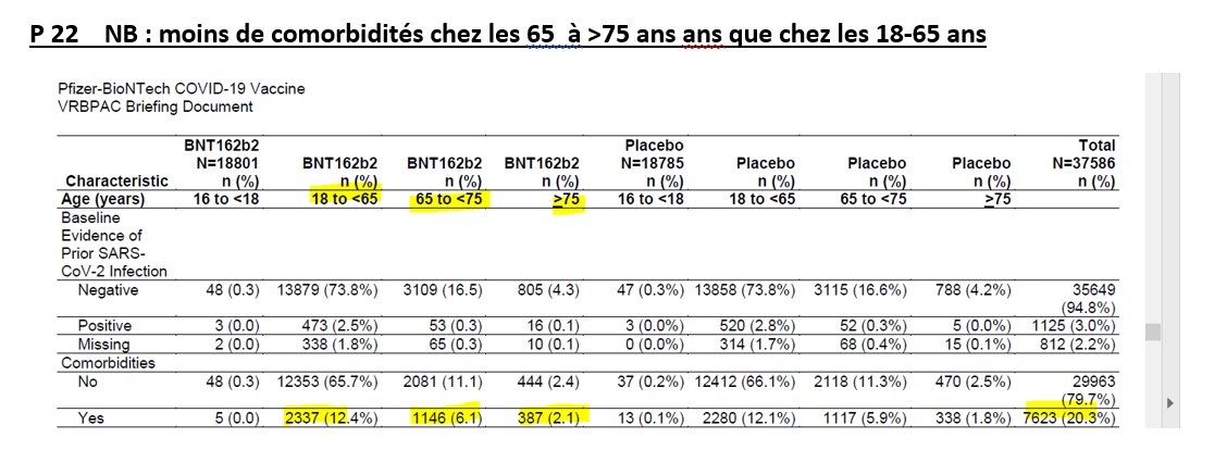 12/n L'efficacité d'un vaccin peut varier énormément selon les groupes cibles vaccinés. Or, remarquons qu'ici, bien qu'un groupe de plus de 75 ans ait été inclus dans l'essai, le promoteur de l'essai, à savoir Pfizer, a souhaité recruter des personnes "healthy" (en bonne santé)>