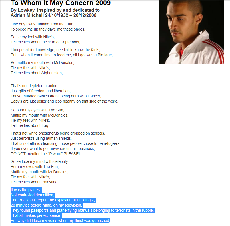 The rapper @Lowkey0nline has a main part in the vid, he's rather partial to a bit of 9/11 conspiracy as evidenced by his lyrics...and don't shop in @marksandspencer