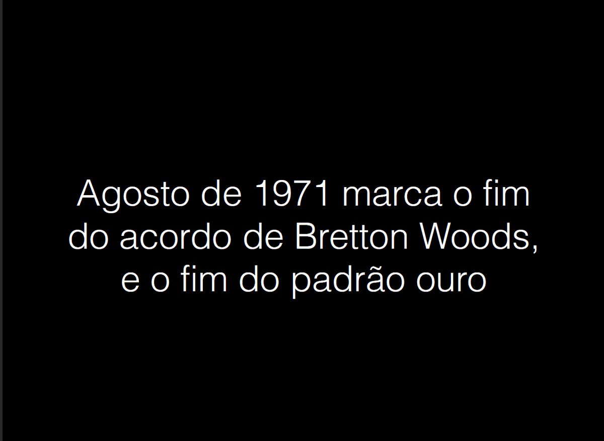 15) Calma que já vamos começar falar sobre Bitcoin. Antes, precisamos entender que em agosto de 1971 tivemos o fim do acordo de Bretton Woods, que marca o fim do padrão ouro. A partir de então a nossa moeda se torna fiduciária, o termo vem de fé, fé no emissor do título (BC)