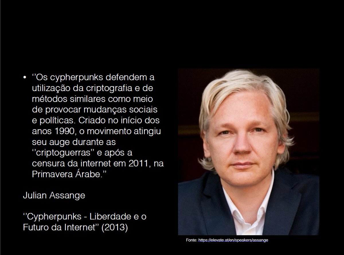 17) Um dos cypherpunks mais famosos (apesar de ter entrado tardiamente no movimento) é Julian Assange. Fundador do Wikileaks. Deixo de sugestão seu livro "Cypherpunks - Liberdade e o Futuro da Internet" (2013)