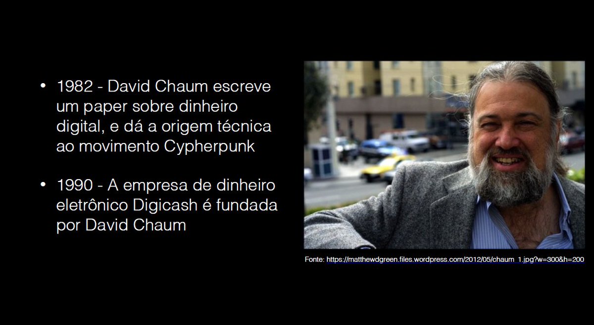 21) 20) A rede Bitcoin não foi a primeira forma de dinheiro digital, sabia? O precurssor disso foi David Chaum, que em 82 escreveu um paper sobre dinheiro digital e que deu a origem técnica do movimento cypherpunk. Em 90 funda a Digicash, primeiro dinheiro eletrônico