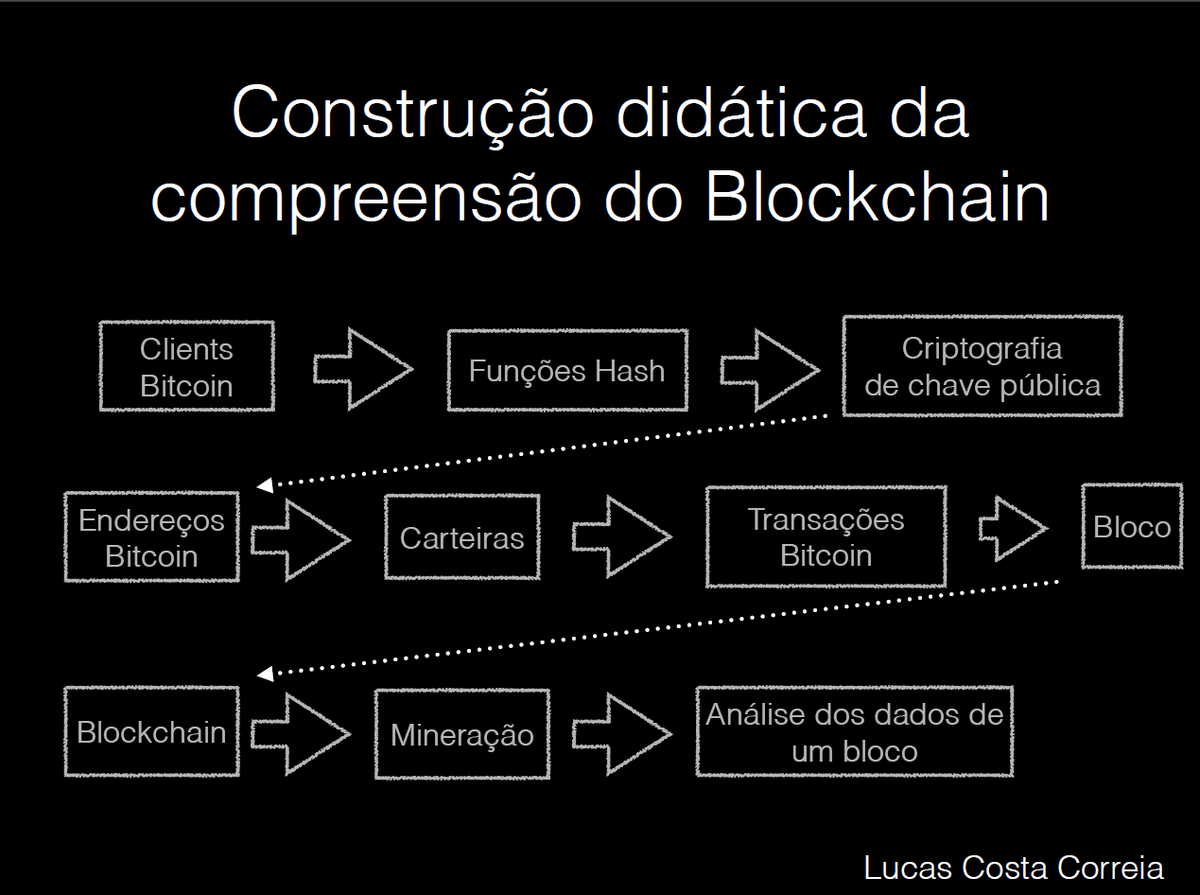 37) Na época que pesquisava sobre criptos no mestrado quebrei muita cabeça tentando fazer uma construção didática de como explicar o funcionamento de um blockchain. Posso estar mal informado, mas entendam que isso era em 2017, tínhamos bem menos informação do que hoje.