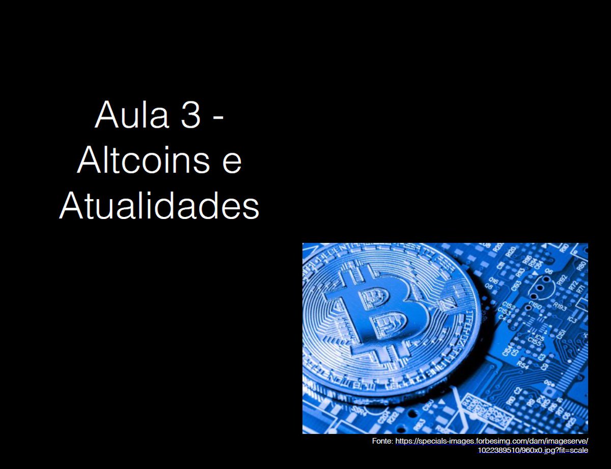 63) Vamos falar agora sobre Altcoins e "Atualidades". Esse material fiz em 2018 e pode estar um pouco datado, de qualquer maneira, são assuntos importantes a serem discutidos. Por fim, acho importante falar do Ethereum e Smart Contracts