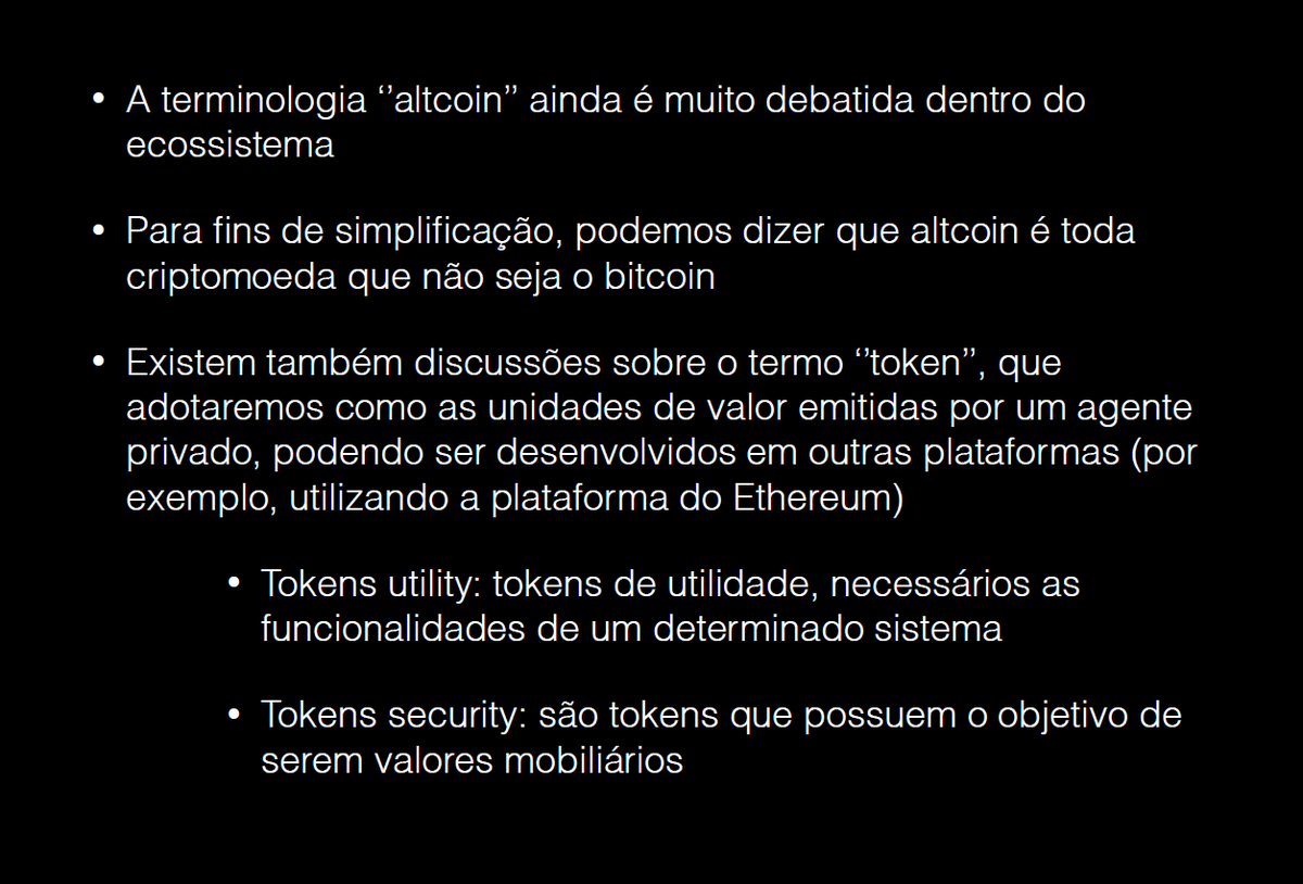 67) Exemplo de altcoins e tokens. Faço aqui a diferenciação entre tokens security e utility