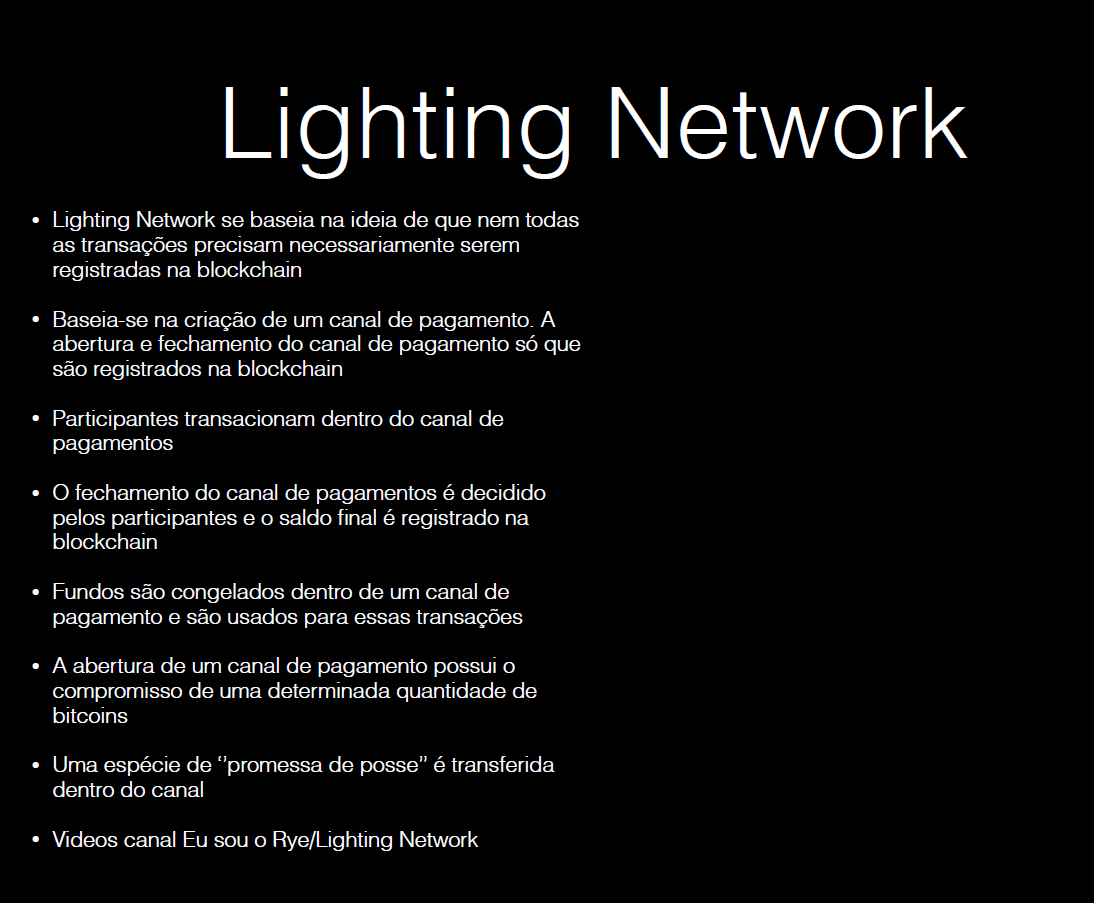 71) Lighting Network/Sidechains. Solução proposta para melhorar escabalabilidade do Blockchain. Parte da premissa de que nem todas as transações devem ser registradas diretamente no Blockchain. Desse modo, cria sidechains, canais de pagamentos para transações menores.