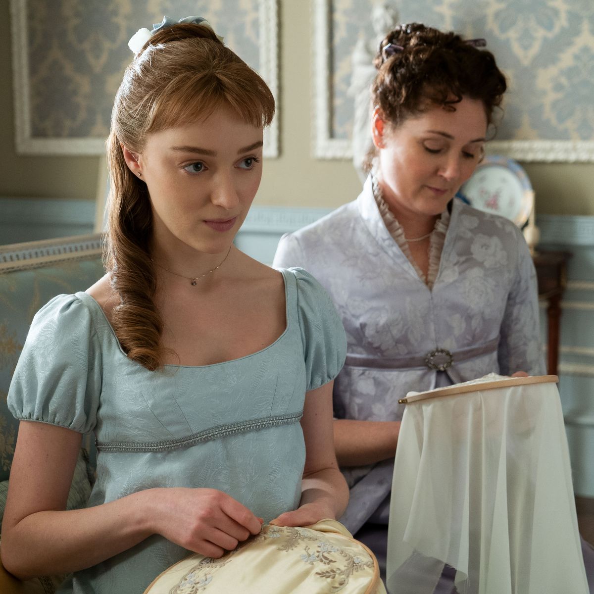 2018's Vanity Fair runs more to the accurate side, but is definitely sexy, accessible, and far from muted. (Note Bridgerton's Eloise as Amelia Sedley!)