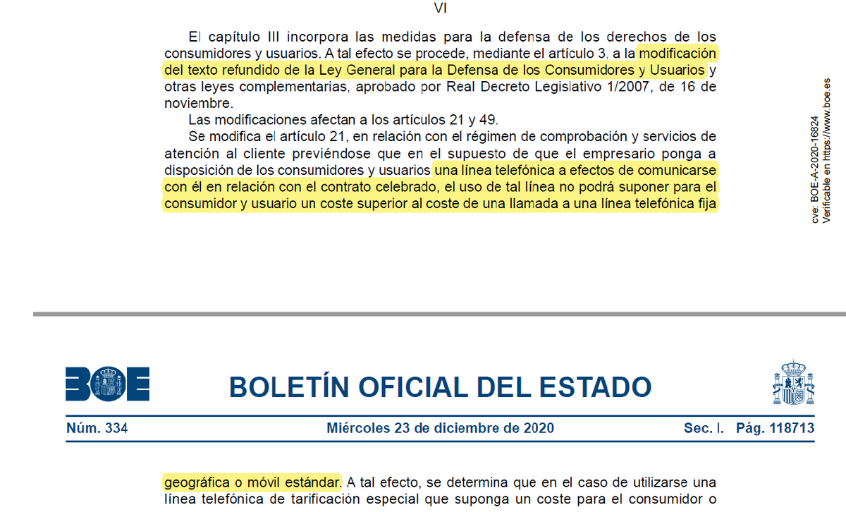 El RD 37/2020, de 22 de diciembre, establece medidas en materia de defensa de los consumidores y usuarios, para eliminar las trabas económicas en el acceso a los servicios de atención al cliente.