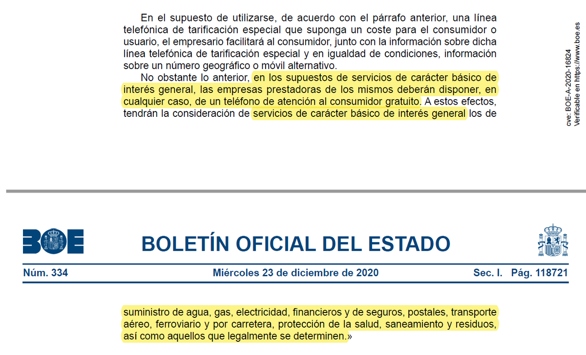 Las empresas prestadoras de servicios de carácter básico de interés general deberán disponer de un teléfono de atención al consumidor gratuito.