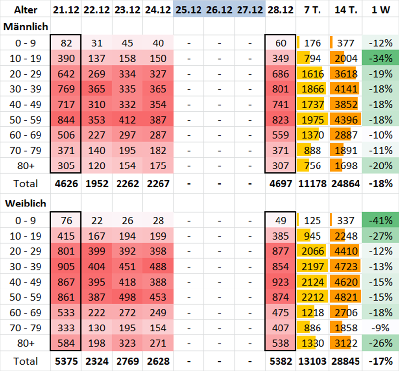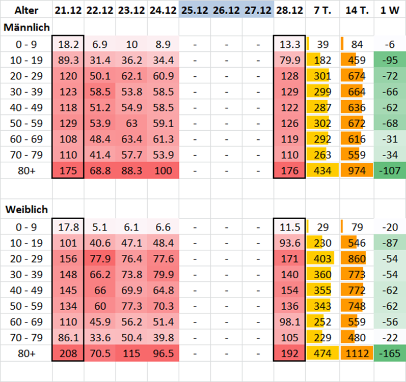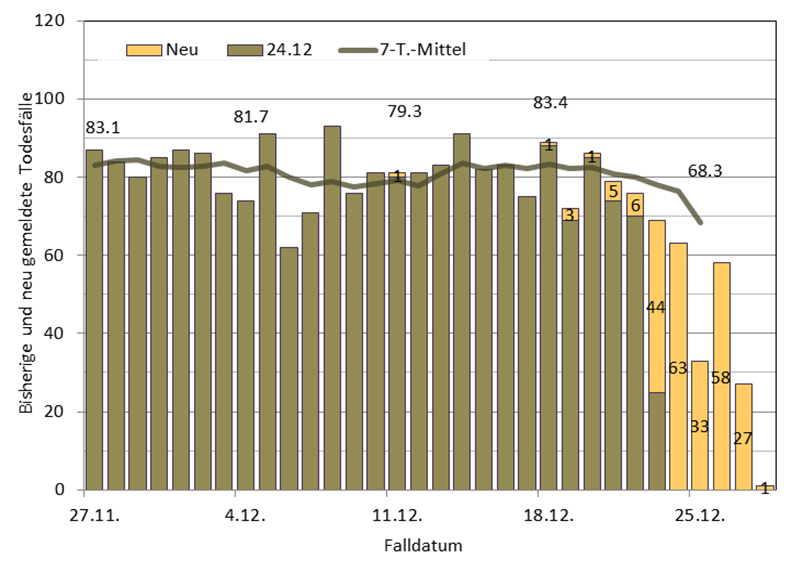 Epidemiologische Kurve der letzten 4 Wochen (bis 26.12./22.12.):