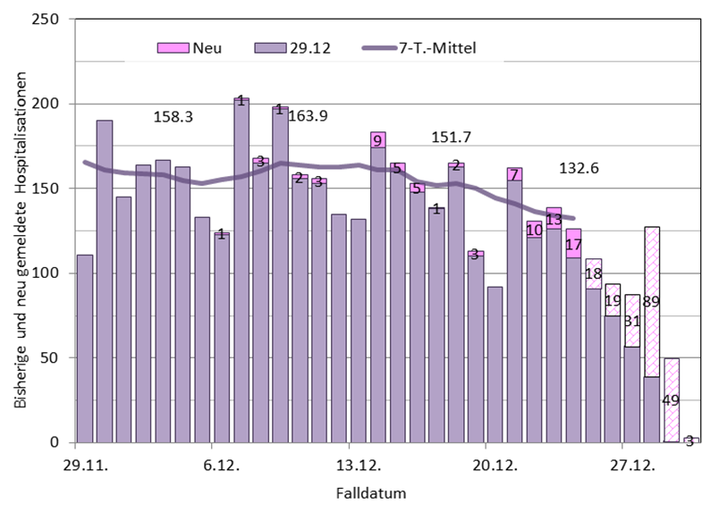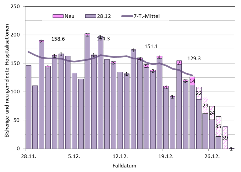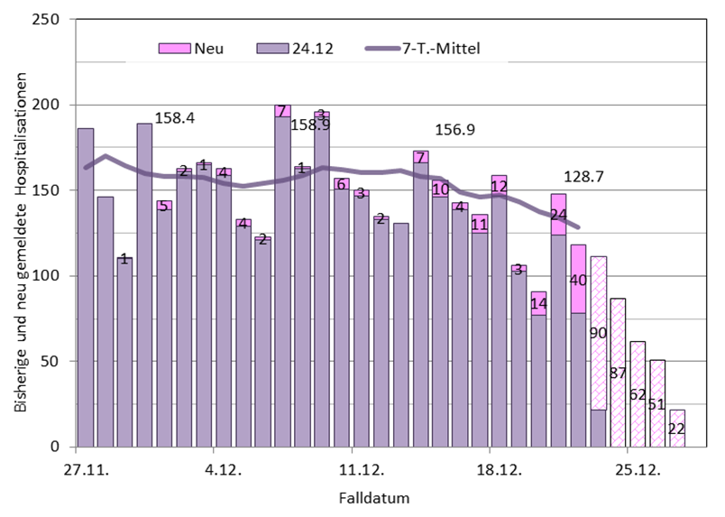Spitaleintritte und Hospitalisationsrate leicht abnehm., es ist mit Nachm. zu rechnen