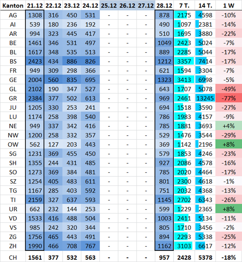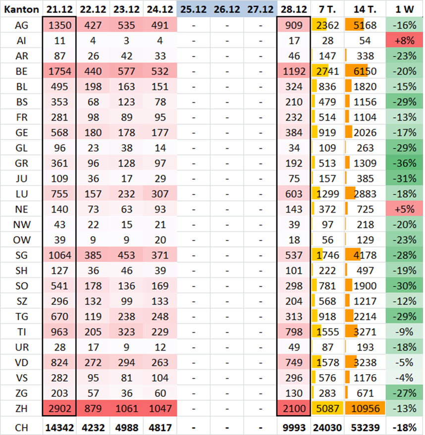 - 4'437 aktuelle Fälle So-Fr
