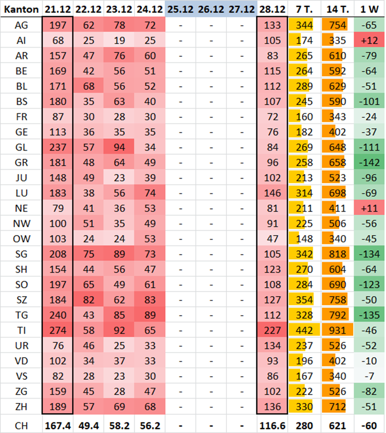 Die Fallzahl ist tiefer als an den letzten zwei Di, wo 4'271 und 4'275 gemeld. wurden.