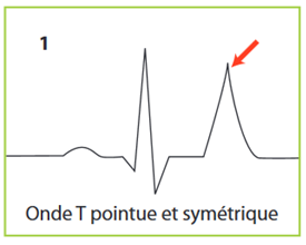 - d’abord de grandes ondes T pointues symétriques⛺️, qui ne sont PAS un signe menaçant (cf traitement) mais un témoin de l’hyperK