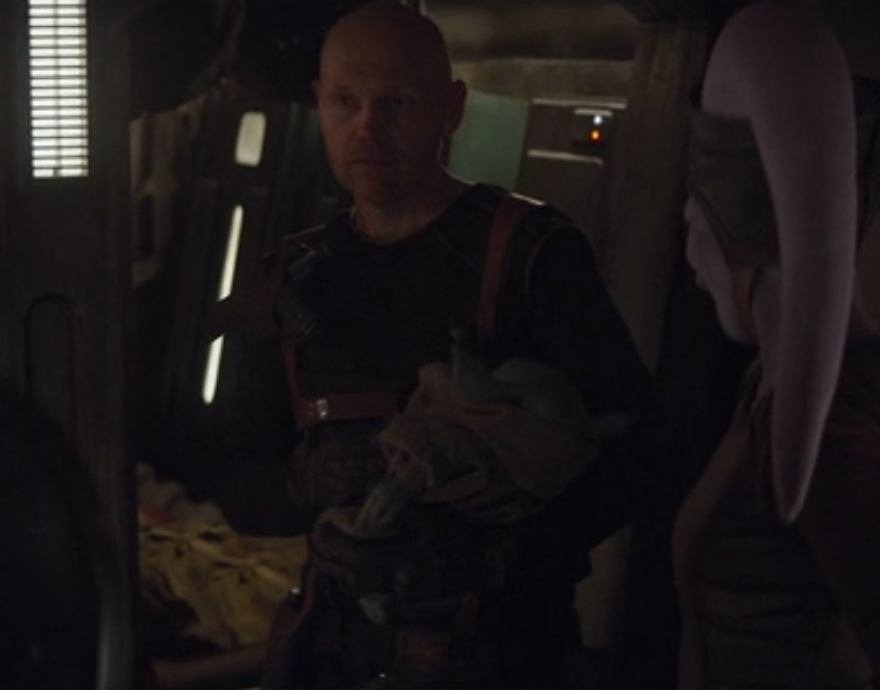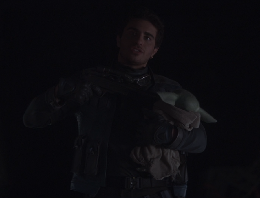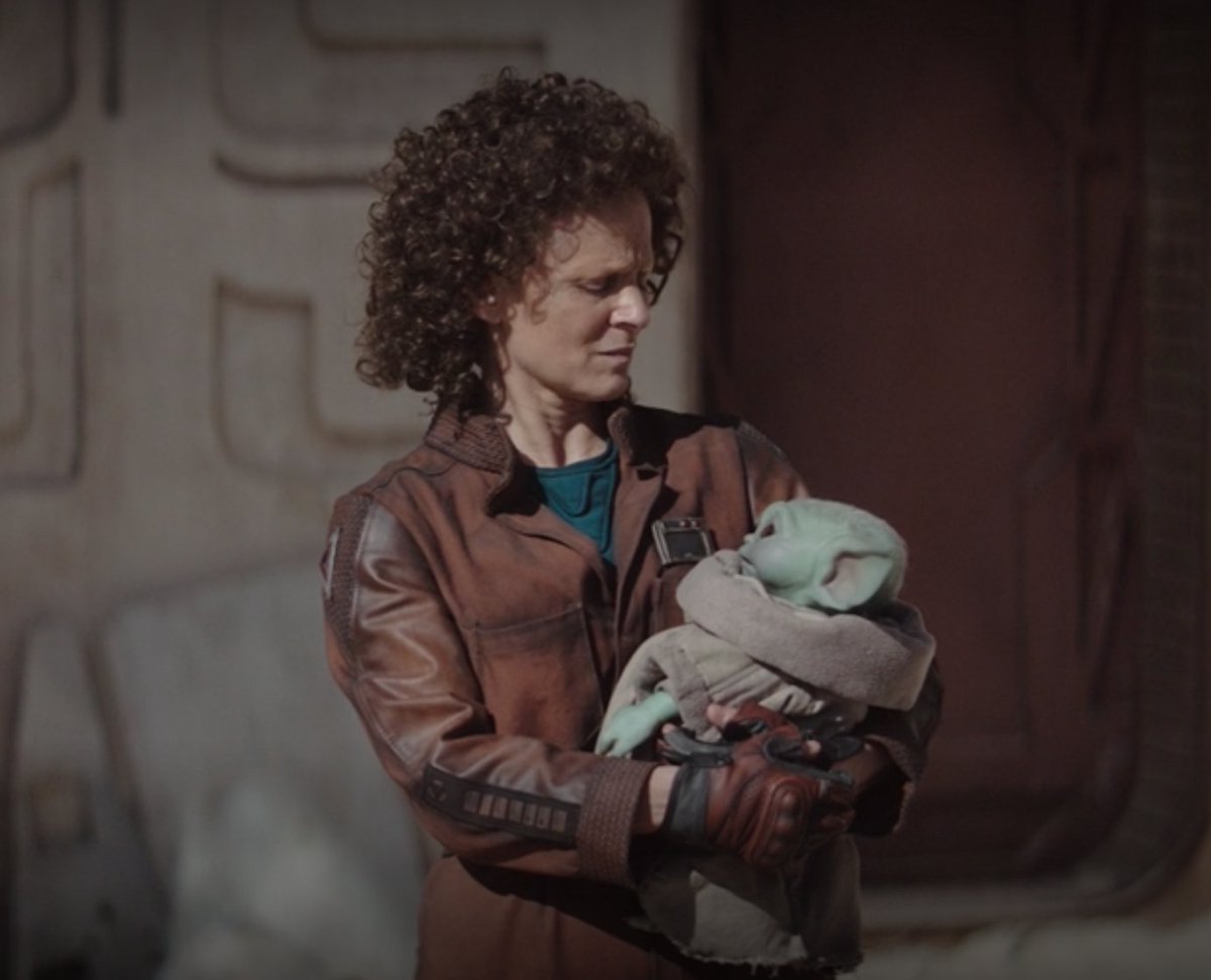 Check the Mum Guns. Cara carries Grogu with the easy confidence of a soccer mum who can manage all the shopping in one arm and at least one baby in the other. Probably more.