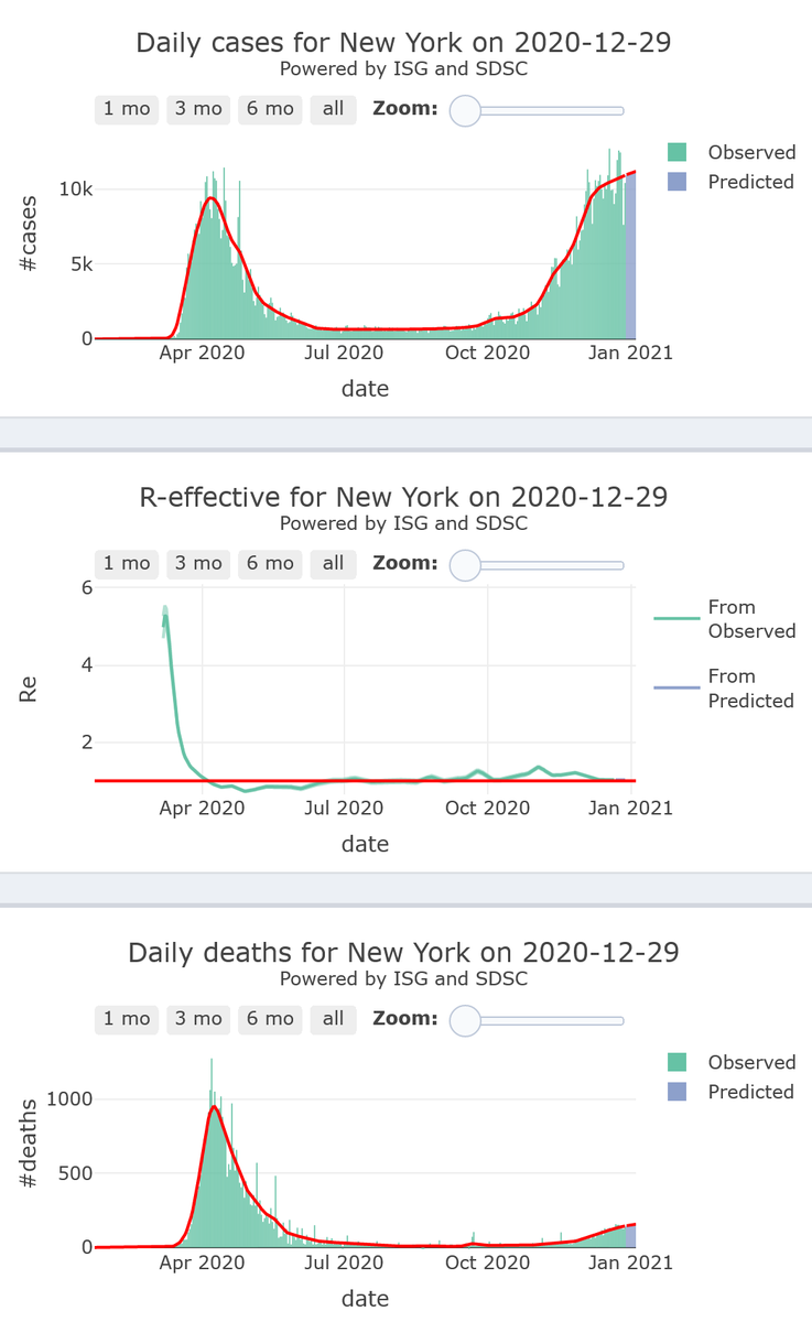 4/10 - New York seems close to take over control of its #COVID19 second wave (R-eff=1.02), plateauing at high levels, with increasing very high levels of mortality, for 7 more days
