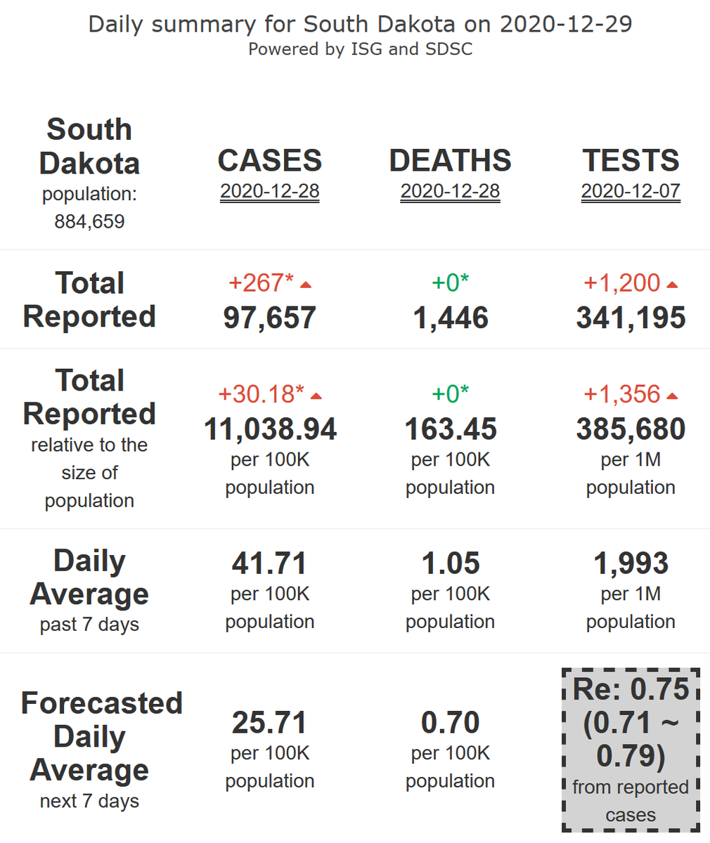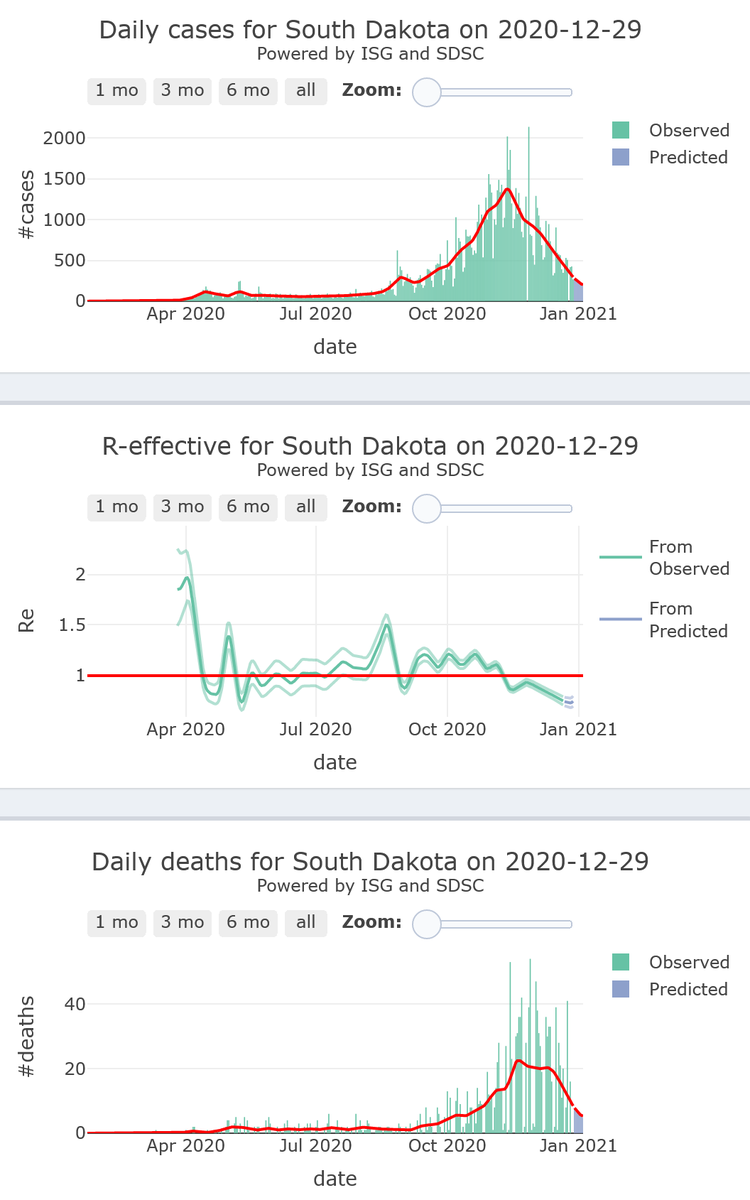 8/10 - South Dakota is landing towards its #COVID19 safety zone (R-eff=0.75), although still at high levels of activity, with decreasing high levels of mortality, for 7 more days