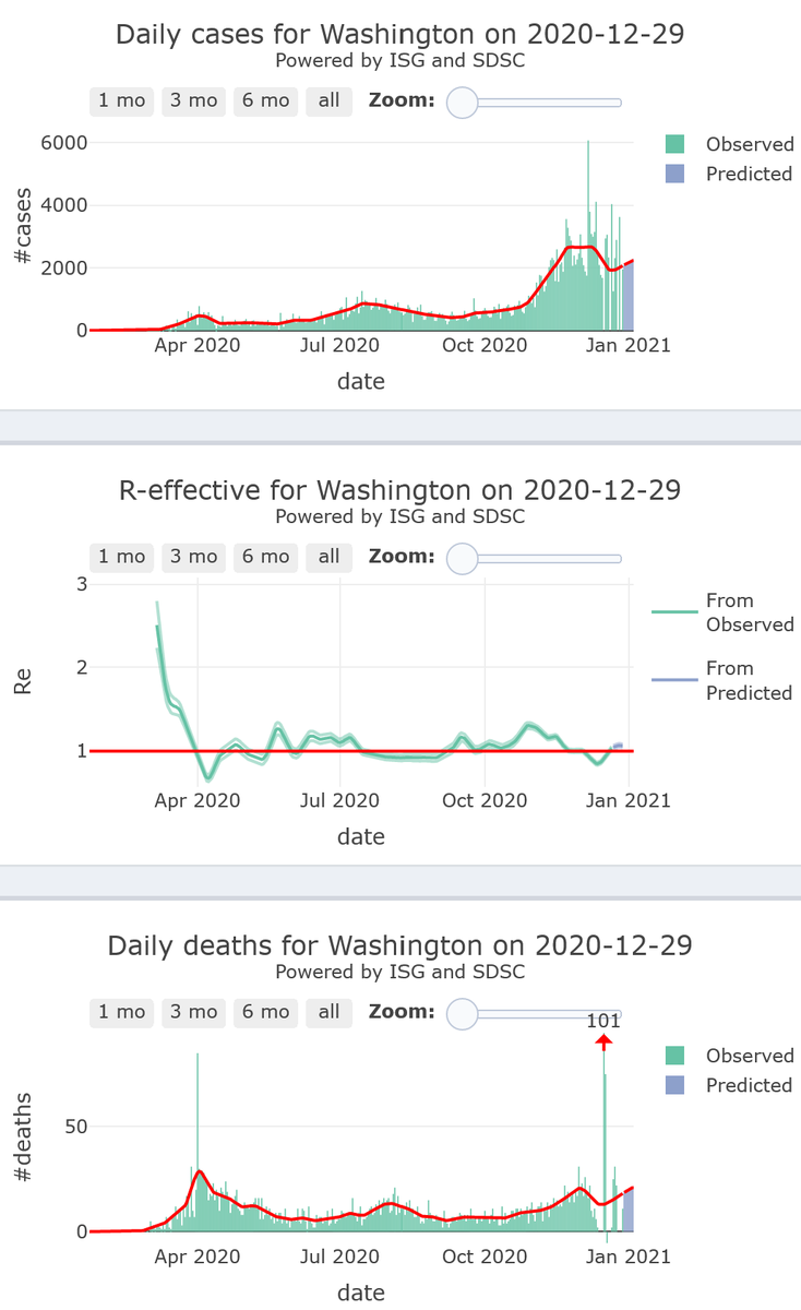 10/10 - Washington is plateauing in its #COVID19 epidemic activity (R-eff=1.03), at high levels, with high levels of mortality, for 7 more days.